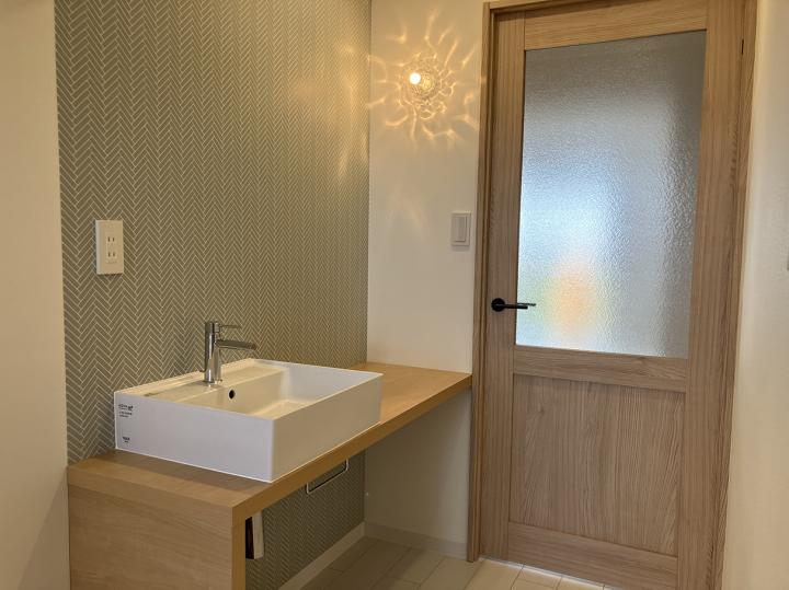 ■壁紙に合わせたナチュラルな色合いのシステムキッチン